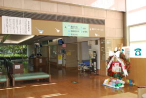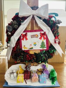 外来ロビーに、クリスマスリースが飾られました。 このリースは、精神科デイケアのリハビリプログラムの一環として、利用者のみなさんが飾りつけと設置を行ってくださったものです。 リースが飾られたことにより、ロビーがクリスマスの季節を感じられる明るい雰囲気になりました。